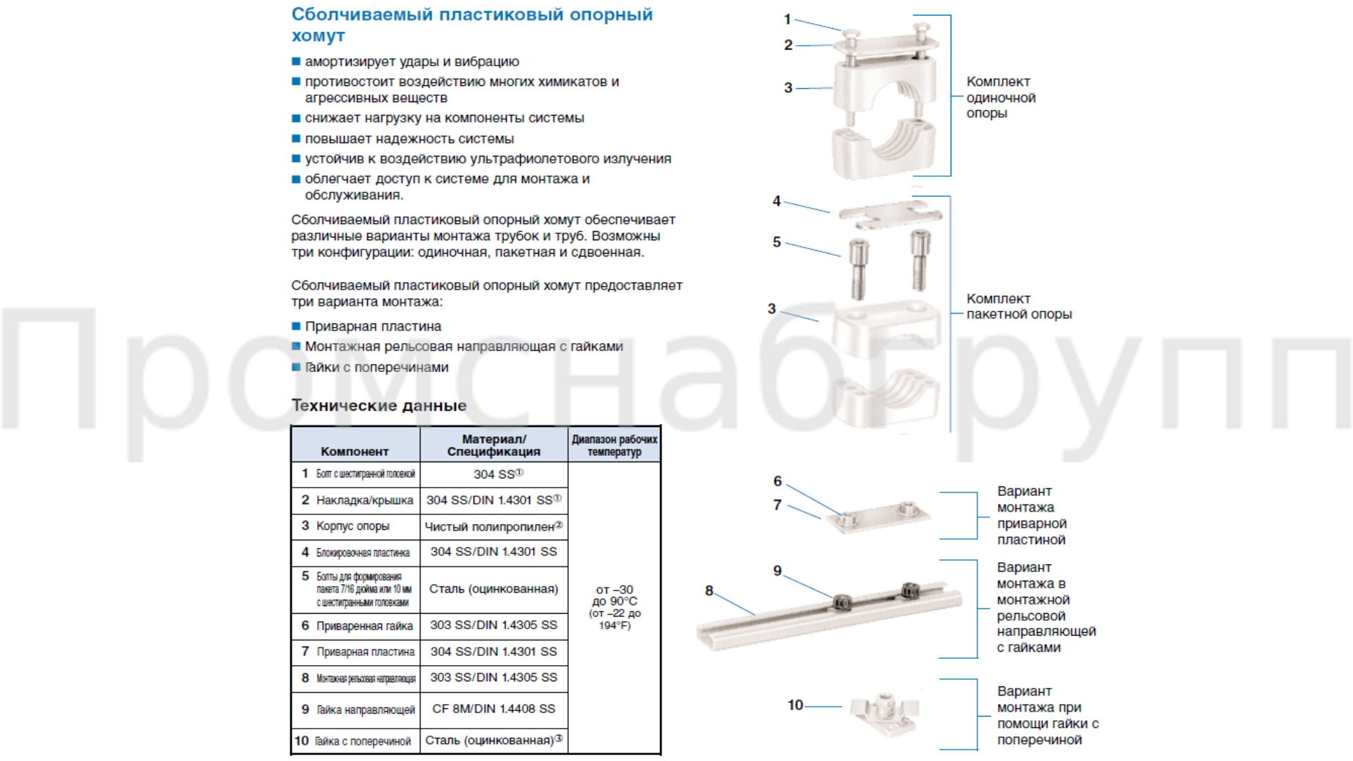 Сболчиваемый пластиковый опорный хомут обеспечивает